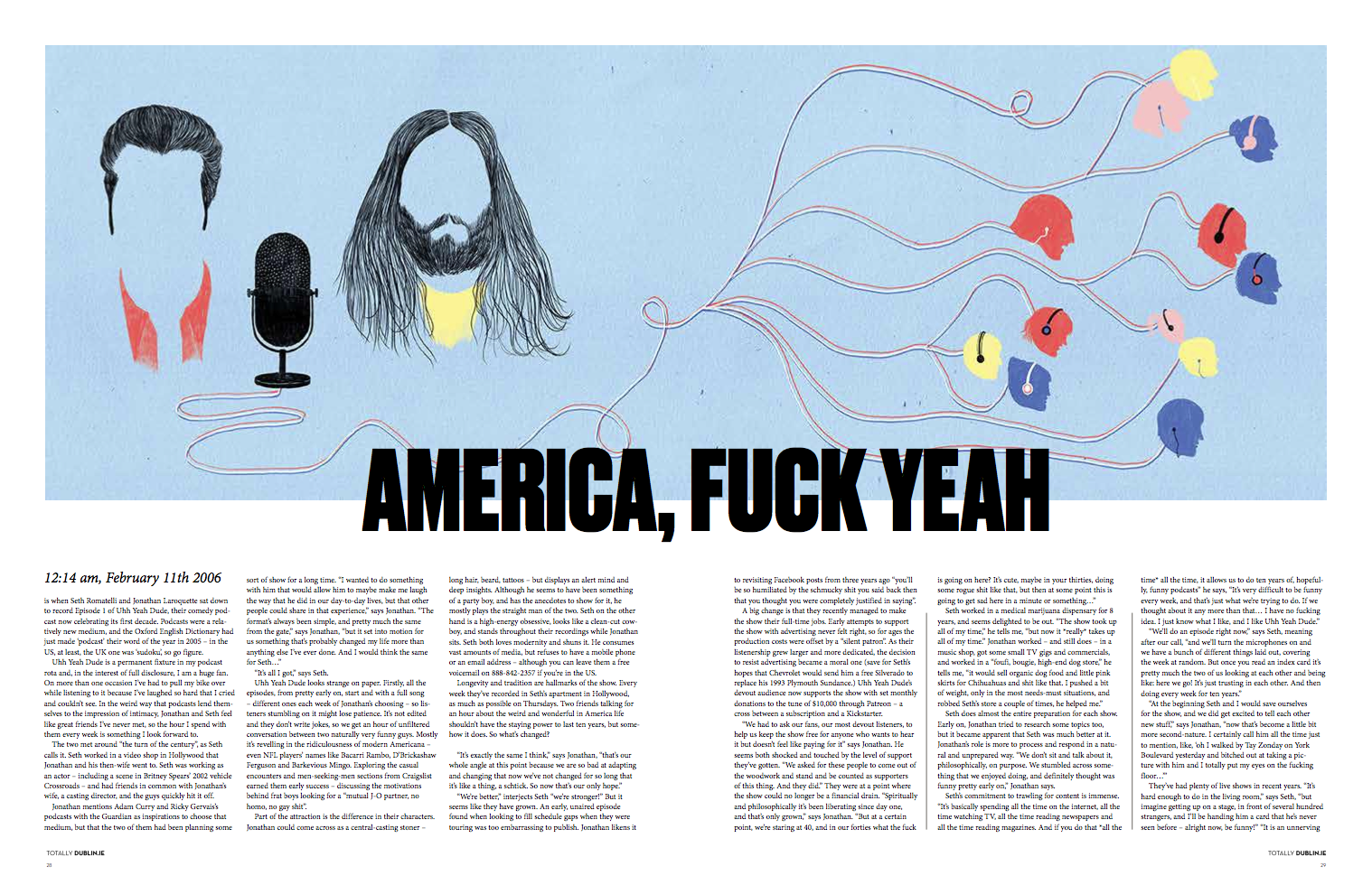 Illustrations done for an article about "Uhh Yeah Dude" podcast about all things American. (Totally Dublin magazine).