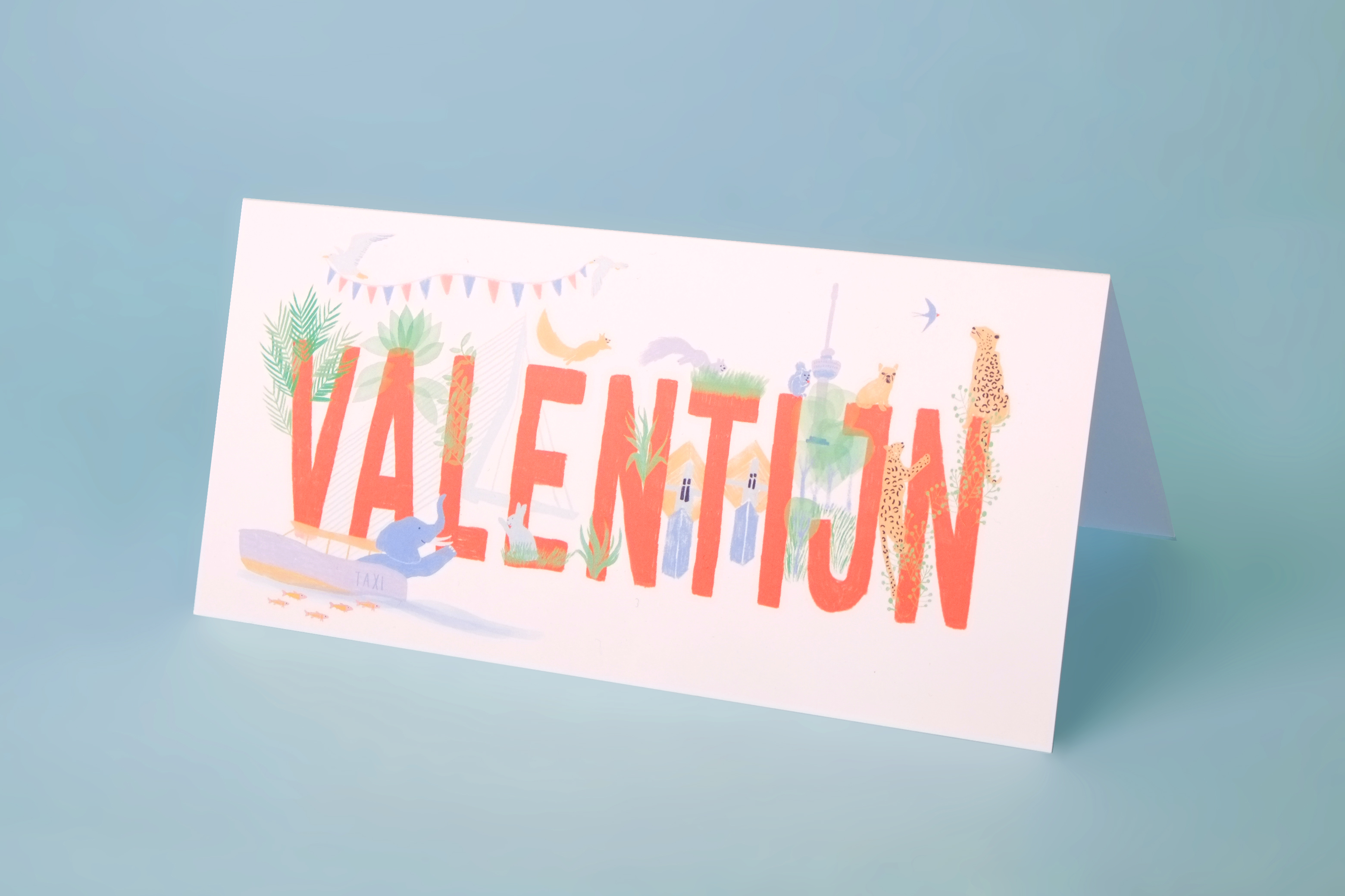 Baby card commission for Valentijn. His parents wanted a playful setting with Rotterdam elements.